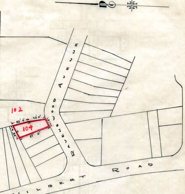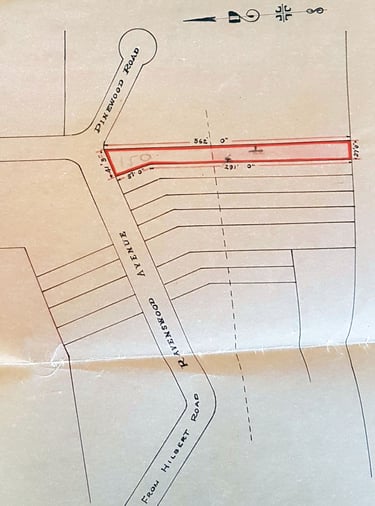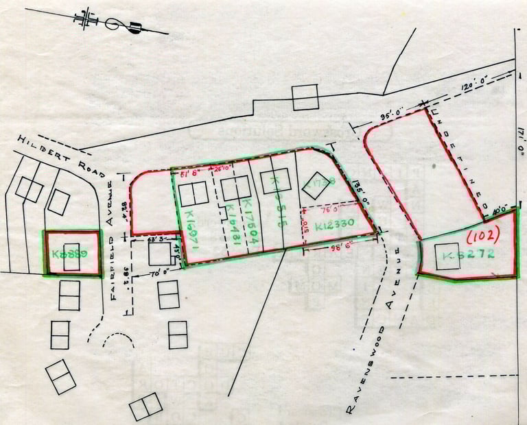 A 1934 plan (above) confirming 102 Ravenswood Avenue was built before most of its surrounding properties, and showing the houses that had been built at that time. Note that not all of Fairfield Avenue or Hilbert Road had been completed. The plan on the left for 104 Ravenswood Avenue is dated 1937 - plans thanks Clive Stace.