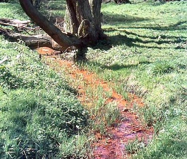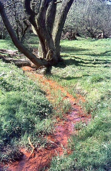 A good example of the ‘rusty streams’ (chalybeate), especially conspicuous in Folly Shaw – photo thanks Clive Stace.