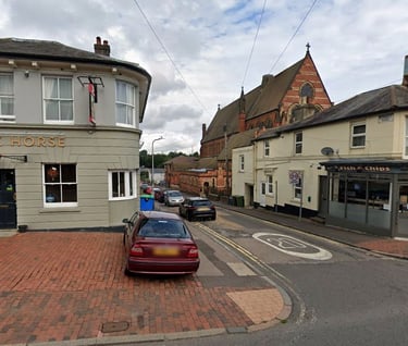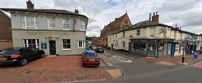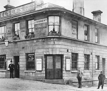 Most of us who lived on the Ferndale Park Estate in the 1950s and 1960s will remember the fish and chip shop in Quarry Road on the corner of Stanley Road opposite St James School, and I am pleased to find it is still there (above left). On the opposite corner, at the bottom end of Camden Road, was the Black Horse public house where Cedric Novis’ grandfather, Harry Netley, was the licencee between 1903 and 1922. I am also pleased to see is still there, although many of us will remember it looking more like the black and white photograph – photo thanks Google Earth and Facebook OTWPS.