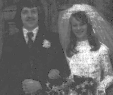 The 22 August 1975 Courier reported, ‘The wedding took place on Saturday at the Baptist Tabernacle, Tunbridge Wells of Miss Sandra Packham, eldest daughter of Mr and Mrs F Packham of 1 Rossdale, Tunbridge Wells, and Mr Robert Marshall, eldest son of Mr and Mrs L Marshall of Riverdale House, Chartham...In attendance were....and Linda and Amanda Packham (sisters of the bride)...’, (picture right).
