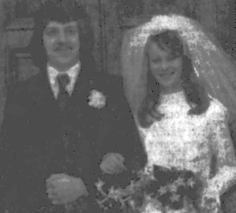 Sandra Packham, daughter of Jean Taylor, 74 Ravenswood Avenue, and Robert Marshall wedding – photo thanks Courier.